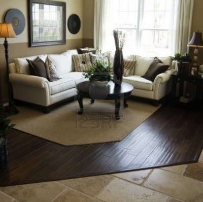 Сучасні вітальні складаються звичайно з декількох зон, і кожна з них має своє покриття у відповідності з її функціями і стилем. Для цього можна об’єднати, наприклад, плитку, дерево і м’який килим або ковролін і коркове покриття – варіантів таких комбінацій дуже багато!