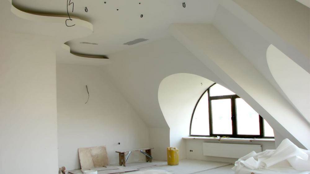 - Збирається хвиля так, як збирається конструктор. З арочного профілю на стелі дається каркас, а фрагментами гіпсокартону каркас обшивається.