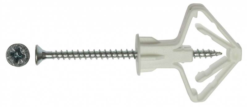 Крила відмінно фіксують конструкцію, а гвинт кріпити можна викруткою або шуруповертом. Такий дюбель часто використовується для того, щоб повісити люстру.