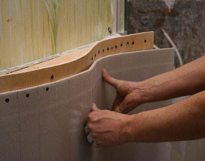 По закінченню цього часу можете гнути гіпсокартон так, як потрібно. Якщо радіус згинання великий, цей спосіб буде ідеальним. Але якщо передбачається маленький радіус, подібна технологія може призвести до того, що лист трісне і навіть зламається.