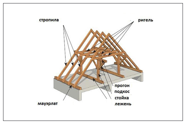 Загальне уявлення про значення кожного елемента конструкції істотно полегшить завдання будівництва двосхилим даху своїми руками.