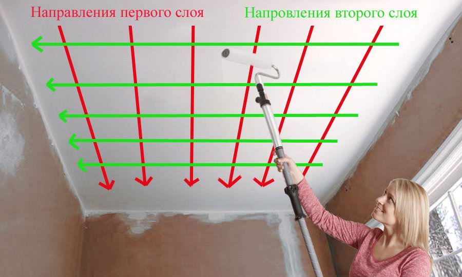 - Смуги фарбування наносите уздовж стелі, перевіряючи якість покриття;