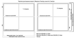 Для початку намалюйте ескіз майбутніх воріт і знайдіть який-небудь стандартний креслення. Найбільш універсальний варіант плану наведено на зображенні нижче.