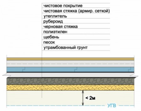 Схема облаштування бетонної підлоги з шарами гідроізоляції