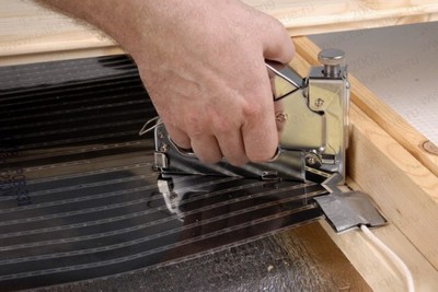 Бічні краї термоплівки (там, де немає струмопровідних елементів), кріпимо за допомогою монтажних скоб або саморізів.