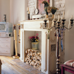 Саморобні каміни з гіпсокартону часто прикрашаються полицями, на які згодом встановлюються різноманітні фігурки, свічки, фото, дзеркала, сервізи та інший декор. Про встановлення полки ми вже піднімали питання, а тому йдеться тільки про декоруванні. Постарайтеся максимально наблизити обробку полиці каміна до порталу і ступені, щоб весь фасад конструкції був в єдиному стилі.
