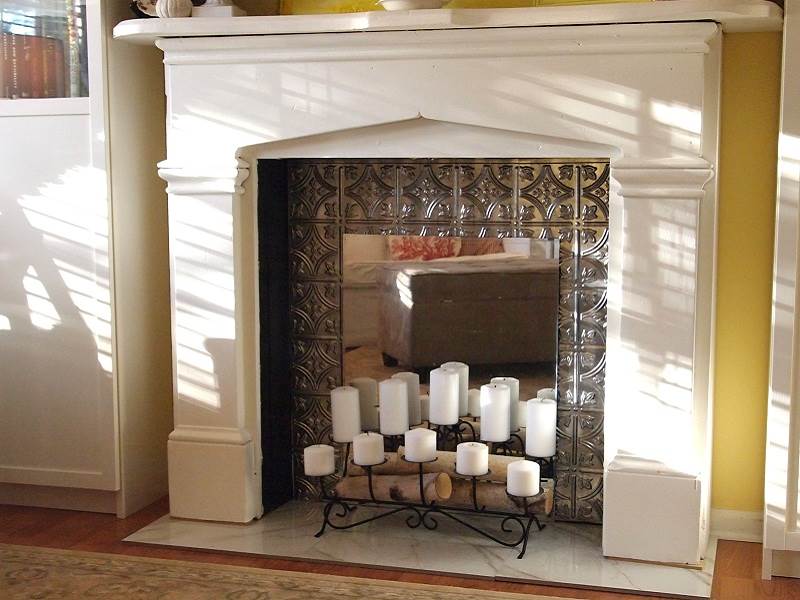 - Споруджуючи фальш-камін з гіпсокартону для звичайного декору приміщення, ви можете не замислюватися про полум’я і тепло від каміна, адже портал каміна з гіпсокартону завжди можна встановити красиві свічки. Добрий десяток масивних і низьких свічок хай і не дасть необхідної кількості тепла, але красиво освітить камін і кімнату в нічний час, захопить грою полум’я і приємний аромат.