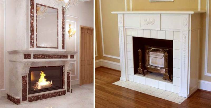 Найважливіший елемент декору будь-якого каміна, так як портал – це, по суті, фасад каміна, який буде у всіх на виду. Оформити ви його можете абсолютно будь-яким матеріалом, так як нам не потрібно підбирати декор під певні вимоги і характеристики. Це може бути плитка, штучний камінь, ковка, гіпсова обробка, фарбування, цегла, мармур і так далі.