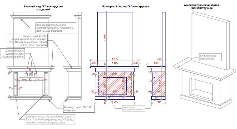 Креслення фальш-камін з гіпсокартону, створення якісного каркаса і оформлення каміна гіпсокартоном – це тільки половина шляху, який нам необхідно було пройти, адже попереду у нас наведення краси і створення саме того зовнішнього вигляду каміна, який повинен задовольнити наші бажання і вимоги стилю приміщення.