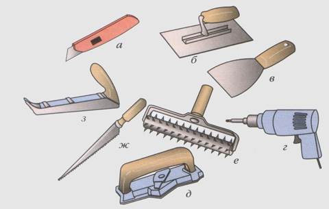 Довго розповідати про спеціальних наборах інструментів і дорогі бренди немає ніякого сенсу, адже тут можна використовувати інструмент, який ми зазвичай застосовуємо для роботи з гіпсокартоном. Зверніть увагу на те, що інструмент для гіпсокартону може бути і не професійним, але якщо у вас є можливість попрацювати серйозною технікою, то не пропустіть шанс, адже процес піде легше і швидше. Дискова пила або болгарку, перфоратор та шуруповерт, просікач і шпателі – загалом, все те, що ми використовували і раніше, коли будували арку з гіпсокартону, ніші в стіні і інші декоративні елементи.