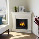 У маленькій квартирі влаштуйте кутовий маленький камін з ГКЛ своїми руками. Він буде доречним на невеликому метражі, і може також виконувати функцію майданчика для сувенірів, скриньок і т. д.