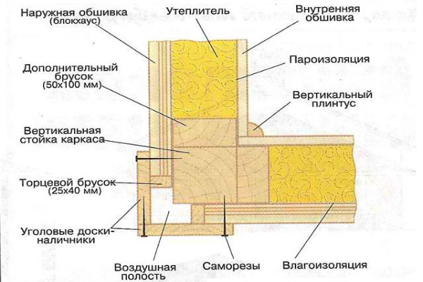 Якщо розглядати шари стінового «пирога» зсередини каркасної прибудови, то вони повинні йти в такому порядку: