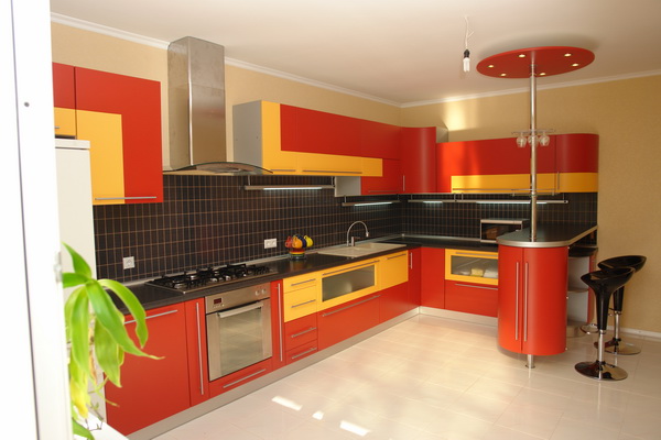 Яскраві кольори вимагають просторо приміщення для проведення різних колірних експериментів. Це також відноситься і до червоного кольору, тому пам’ятайте, що малогабаритна кухня не сприймає великої кількості червоного кольору. Червоний колір безжально може «з’їсти» і так необхідні квадратні метри, які вам так дороги.