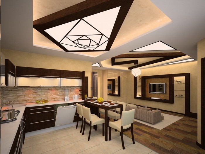 Кухня або кухня-вітальня в африканському стилі оформляється в кольорах африканської савани – яскравих, насичених відтінках коричневого, оранжевого і жовтого. Вітається і поєднання чорного з білого – забарвлення зебри.