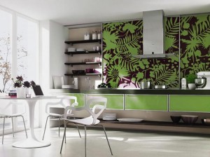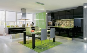 Деякі кухні спочатку виконані в чорно-білих тонах. Така строгість властива багатьом сучасним стилям. Включивши в таку строгу композицію салатовий або світло-зелений колір, ви збираєтеся привнести в дизайн нотки свіжості, якої так не вистачає такого інтер’єру.