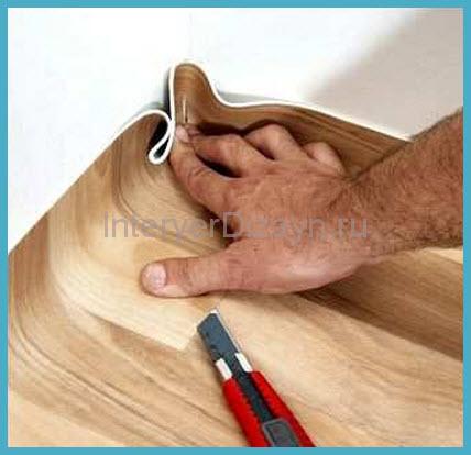 - лист лінолеуму повинен мати розміри, що перевищують габарити кімнати на 10 см – якщо купити матеріал без запасу, точної підгонки може не вийти;