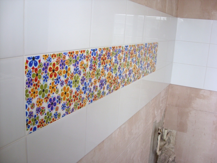 - Своєрідний “пояс”, створений з плитки з різним візерунком;