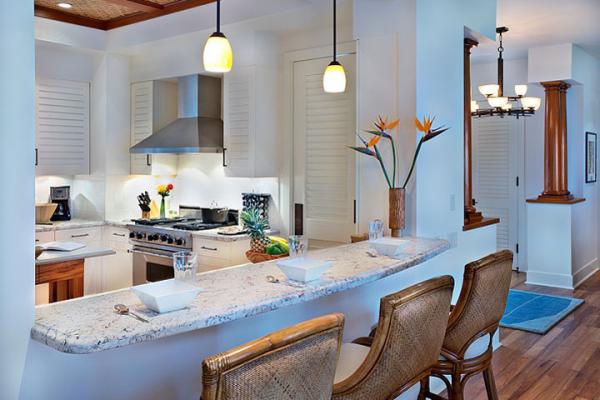 - Барні стільці практично у всіх випадках використовуються з барними стійками, які можна вмонтувати безліч ящиків і шаф для зручного і компактного зберігання кухонного посуду.