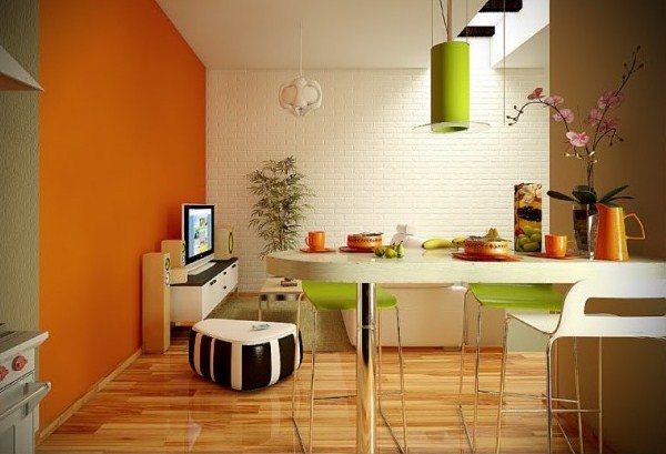Спочатку хочеться зупинитися на психологічному впливі оранжевого кольору, щоб ви могли зрозуміти, чи підходить він для оформлення вашої кухні. Здавна вченими було виявлено збудливий вплив оранжевого кольору на апетит і внутрішній стан людини. Це дійсно так — яскравість і соковитість такого тону приводить у захват практично кожної людини. Помаранчевий колір також знаходиться в «дружніх стосунках» з апетитом, тому, якщо ви стежите за модними дієтами або ваша зарплата поки «ходить в дитячий сад», то помаранчевий колір може піти вам на користь. Але, якщо ви любите відчуття теплоти, затишку і стиглі соковиті апельсини, тоді сміливо оформляйте свою кухню в помаранчевому кольорі і експериментуйте з поєднанням кольорів.