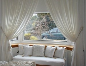 - Високий еркер з великими вікнами дозволить використовувати практично будь-яку, навіть химерну драпіровку.
