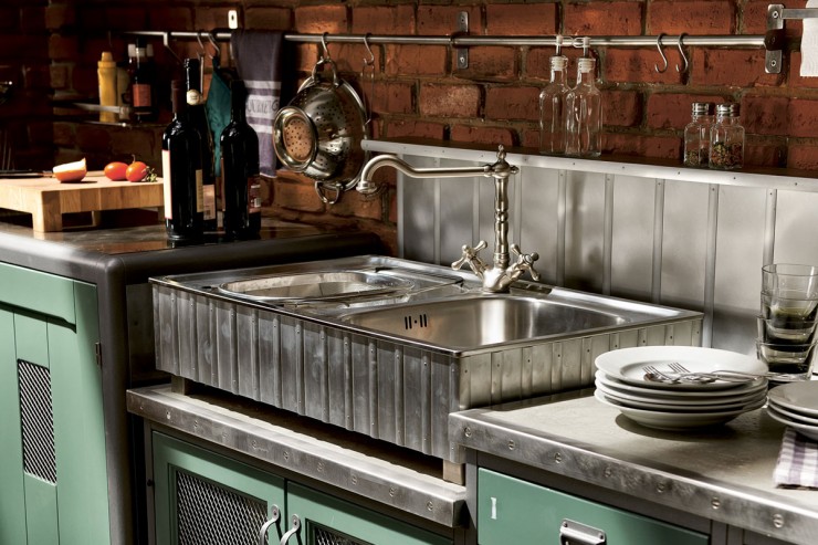 Оздоблення кухні в стилі лофт поєднує в собі сучасні матеріали (нержавіюча сталь, скло, камінь, бетон) зі старими, або навіть «старими» на вигляд фактурами, а також старовинними предметами меблів. Оголені стіни з цегли або просто оштукатурені стіни — чудовий фон для ультрасучасної кухонної техніки, що є сусідами з раритетною раковиною і холодильником початку 20-го століття.