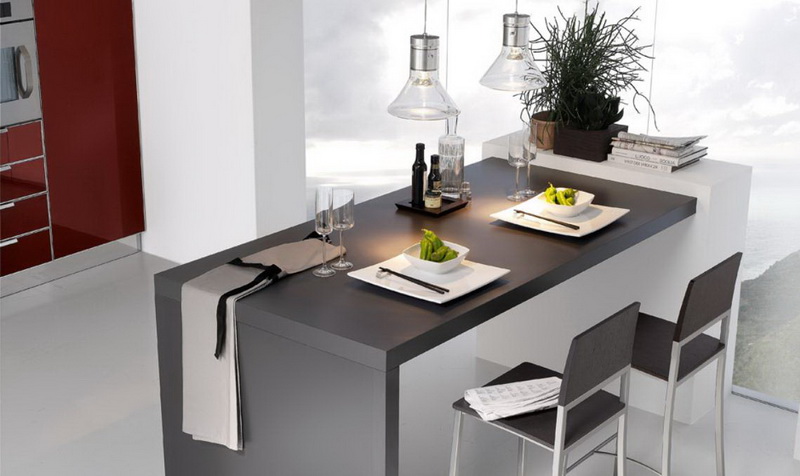 Ще одне відповідне рішення для такої кухні – стіл-трансформер на коліщатках.