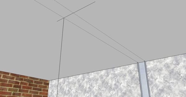 По завершенню проекту і визначення місця для зведення стіни, нам необхідно зробити точну розмітку. Відштовхуючись від показників спеціальних інструментів, наприклад, лазерного рівня, ми робимо відбиття по стелі, підлоги і стін, намічаючи площині майбутньої перегородки.