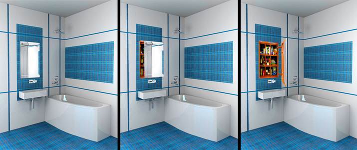 Як правило, подібні конструкції дозволяють приховувати всілякі комунікації (труби, крани, лічильники, системи теплопостачання, проводу електропроводки і т. д.) і тим самим зберігати естетичність інтер’єру.