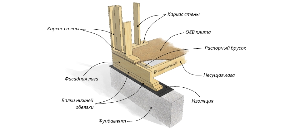 Пристрій нижньої обв’язки каркасного будинку