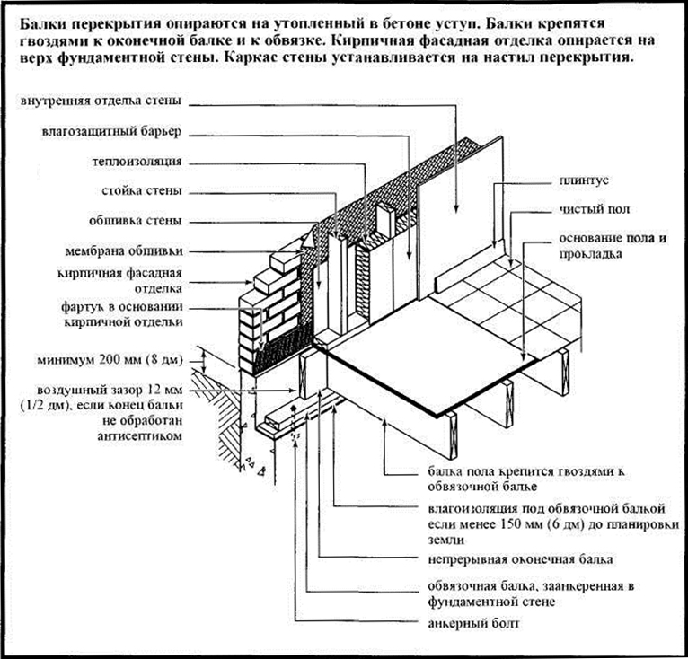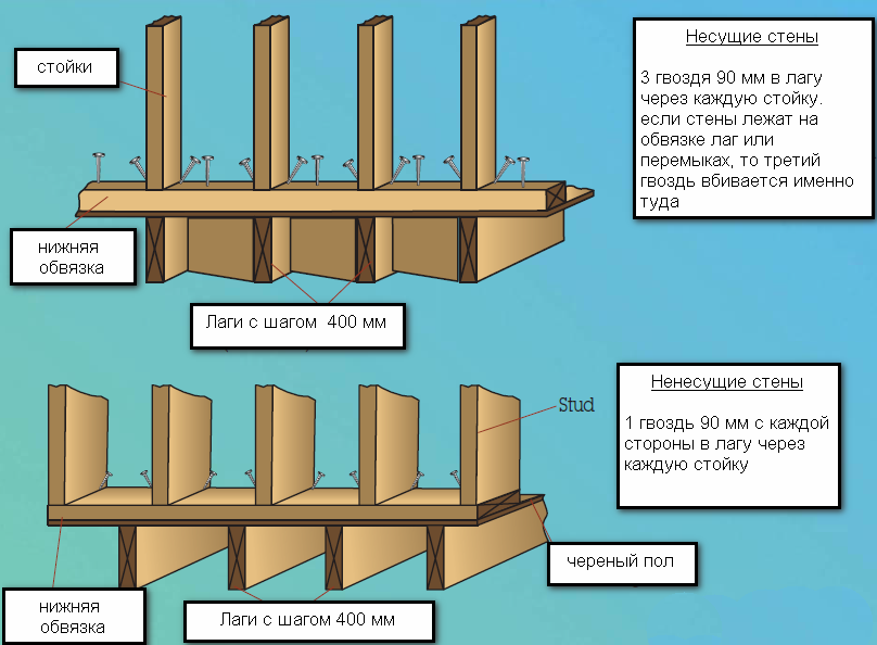 Схема кріплення стін каркасного будинку до підлоги