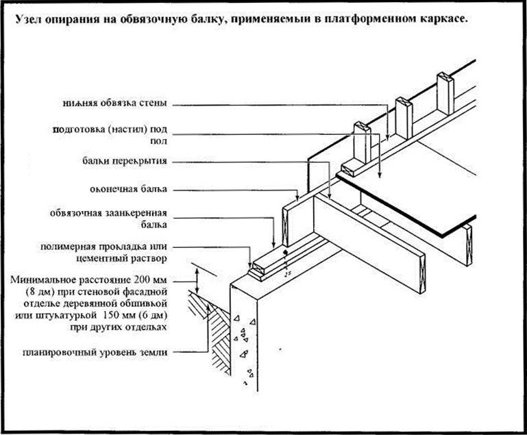 Приклад облаштування нижньої обв’язки каркасного будинку в полдерева