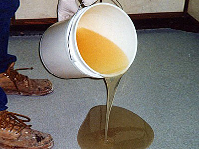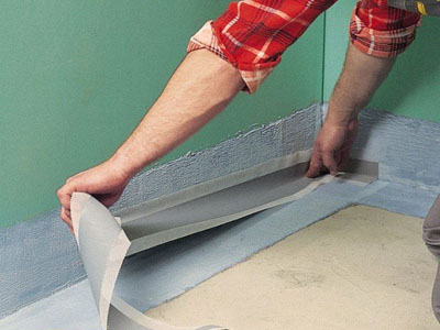 Правильний готовий склад грунтовки має пастоподібну консистенцію. Після нанесення суміші підлога повинна просохнути. На кути і стики приклеюється спеціальна стрічка, яка забезпечить герметичність.