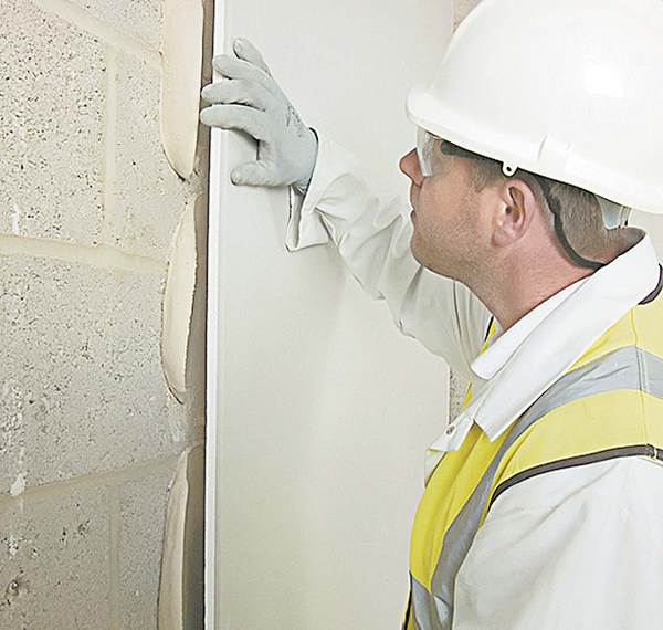 Даний спосіб можна застосувати у тому випадку, якщо в товщу стіни не потрібно закладати утеплювач і комунікації, а просто є вимога створити якісну і рівну поверхню для декоративної обробки. Вам не доведеться створювати каркас і працювати з його обшивкою, можна просто коректно замішати клейовий розчин і укласти гіпсокартон на стіну, дотримуючись рівні площини. Облицювання стін гіпсокартоном без каркасу можлива в тому випадку, якщо стіни без серйозних дефектів, інакше доведеться використовувати спеціальний каркас.