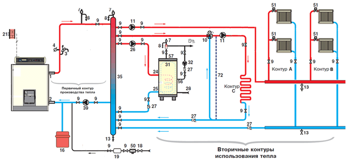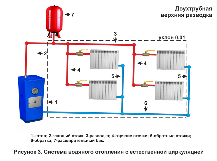 До речі, будь-яка схема водопостачання буде працювати ефективніше, якщо буде володіти природною, а не примусовою циркуляцією, що вкрай важливо. А сильно розрізняються системи опалення?