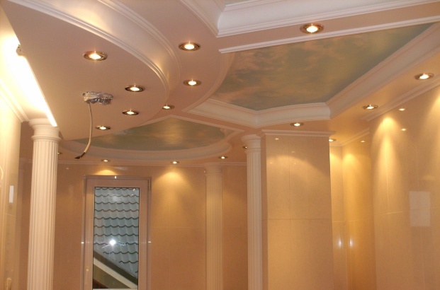- Візуальне збільшення висоти стелі. Подібний ефект не буде досягнутий в малогабаритних приміщеннях, але у просторій кімнаті стеля буде здаватися значно вище за рахунок установки конструкції з гіпсокартону.