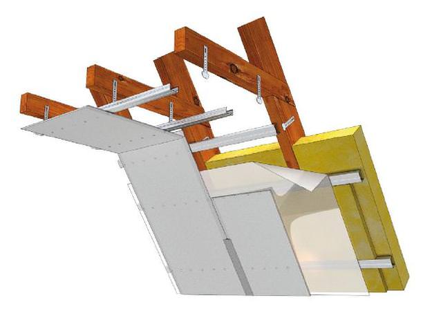 Можна сказати, що у нас буде вже не обробка, а підшивка мансарди гіпсокартоном, що ще більш просто і набагато дешевше. Вам не доведеться витрачати гроші на безліч матеріалів, необхідно буде придбати тільки додатковий брус і рейку, і встановити їх за всіма правилами.