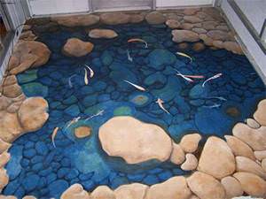 При погляді на «об’ємний» пол створюється ілюзія перенесення в просторі. Досить часто можна зустріти 3D лінолеум на підлозі в дитячих кімнатах або у ванній.