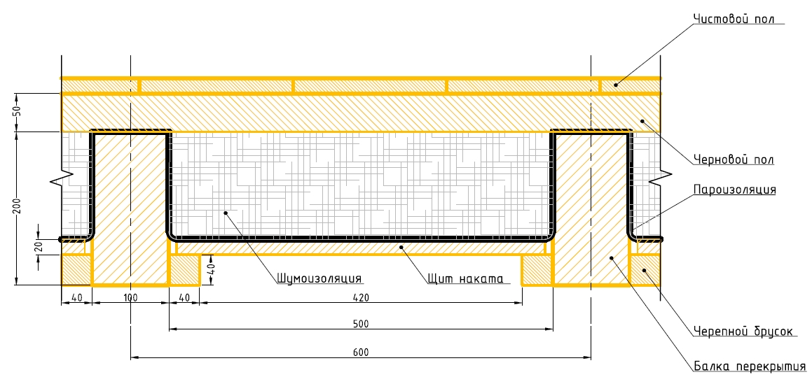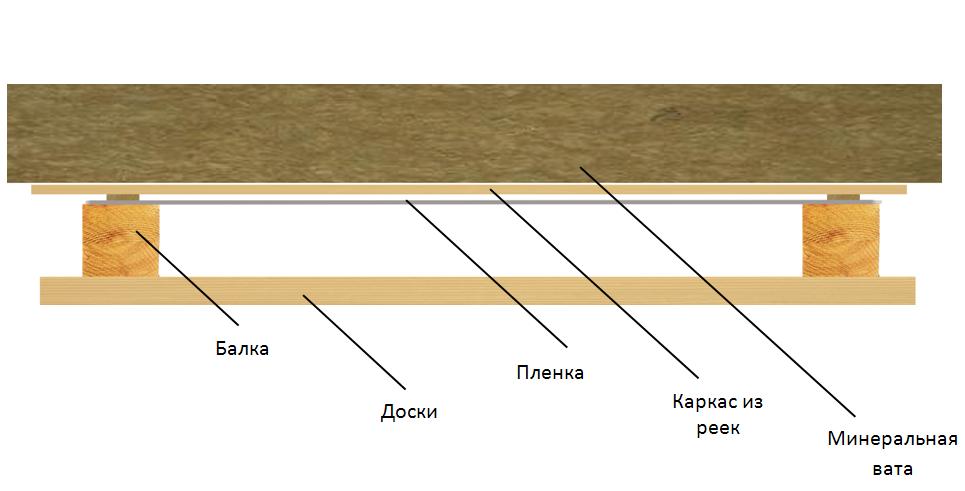 Приклад схеми пароізоляції стелі дерев’яного будинку