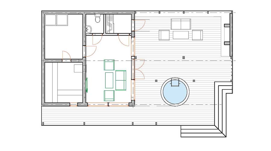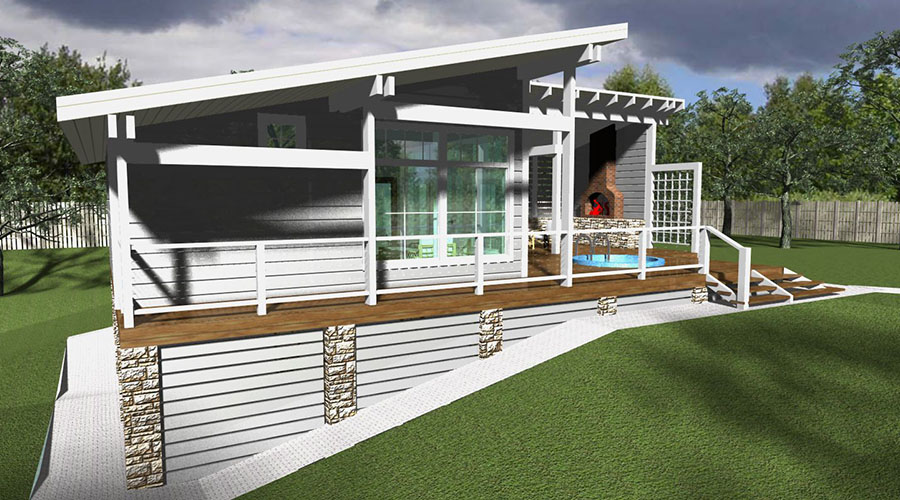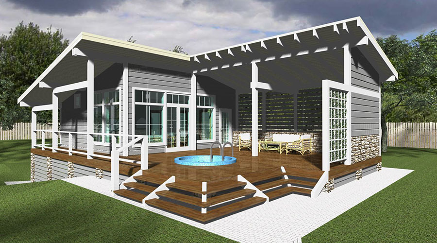 Візуалізація лазні та зони відпочинку. Вид з пташиного польоту
