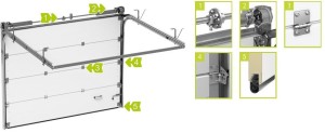 У даній конструкції панелі з’єднуються один з одним за допомогою петель. Секції рухаються по шинам. Як правило, рух відбувається вгору.