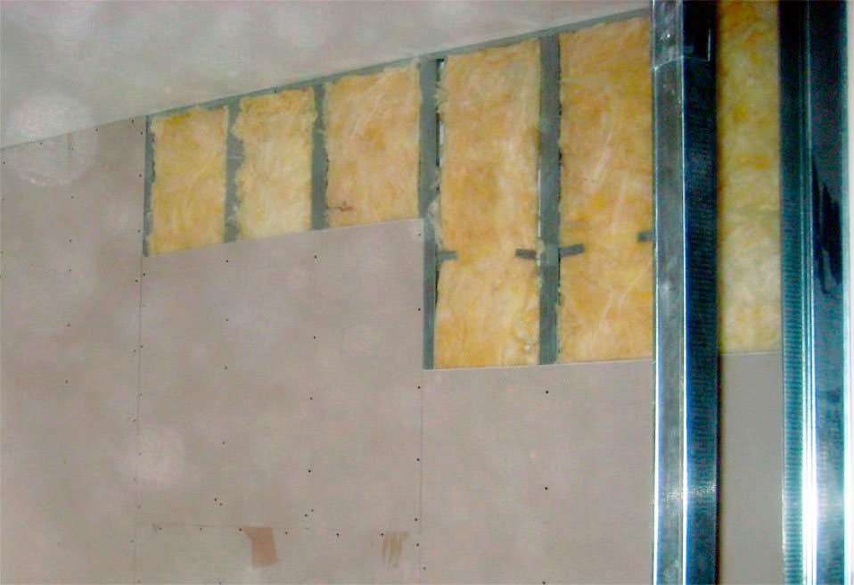 Так як утеплення стін під уже встановленим гіпсокартоном неможливо, каркас ми не зашиваємо, а відразу закладаємо утеплювач, що дуже логічно.