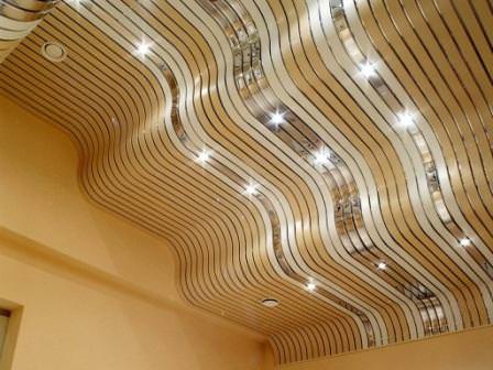 • Рейкова підвісна стеля також часто встановлюється в передній кімнаті. Облицювальні рейки мають невелику вагу, тому закріпити їх до конструкції самостійно не складе праці. Металеві панелі мають різні види напилення, що додають їм не тільки декоративний вигляд, але і захищають облицювальний матеріал від корозійних процесів. Найбільшою популярністю користуються рейки з напиленням «під срібло», «під дерево» і «під золото». Але подібні панелі не призначені для створення складних дизайнерських елементів стельової конструкції.