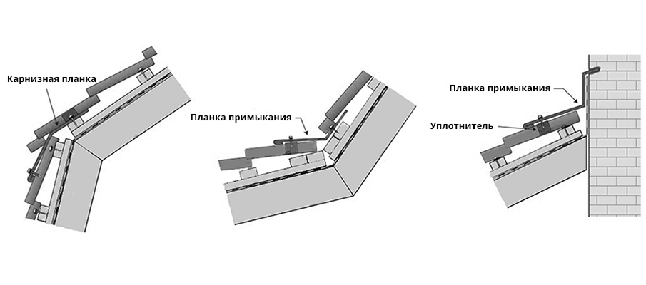 На наступному етапі на фронтонах закріплюють торцеві елементи. Далі виконується монтаж коника. Кріплять її так само, як і верхні ендови на ущільнювальну стрічку.