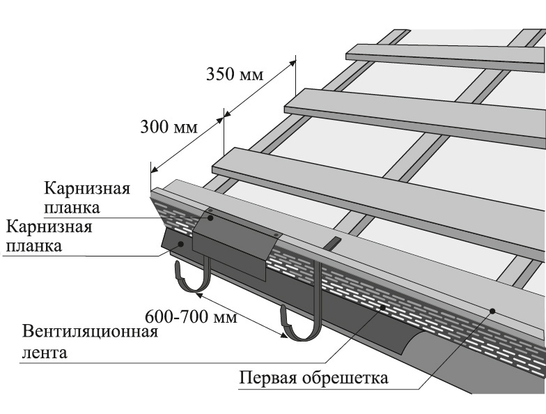 Інструкція по кріпленню цих елементів нескладна. Карнизну планку монтують до початку установки листів. Попередньо набивається лобова дошка. На неї закріплюються кронштейни водостоку. Далі можна приступати власне до кріплення самої планки.