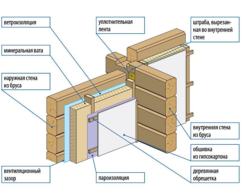 Обробку внутрішніх приміщень також можна робити практично відразу, а ось в брусовом приміщенні слід почекати з оформленням стін, особливо якщо планується установка плитки або декоративної штукатурки, так і ламінат буде лежати рівно, якщо дочекатися усадки.