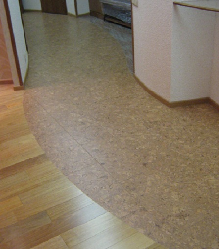 Пробкова підлога в поєднанні з ламінатом — цікаве рішення поділу двох зон