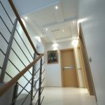 - Слід відразу продумати розташування основного освітлення і, не менш важливою, додаткового підсвічування стелі. Проводка повинна бути закладена в короб першого і, при необхідності, другого рівня стелі до безпосереднього монтажу гіпсокартону.