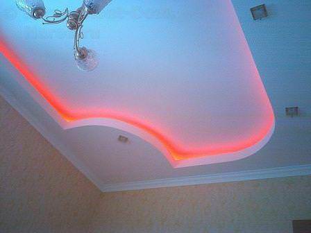 Взагалі, креслення і малюнки будь-якої складності і химерності можна знайти в інтернеті. Будь стеля в два яруси побудований за схемою, де другий рівень «вкладений» в перший, між рівнями залишені зазори.