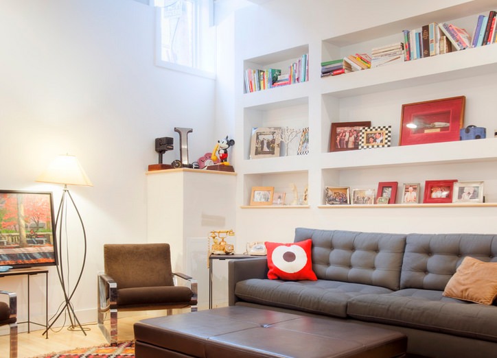 Однією з тенденцій в дизайні є забарвлення полиць в нішах в той самий колір, що й сама ніша і стіни в кімнаті. Але можна вибрати іншу комбінацію – полиці і ніша пофарбовані в контрастний колір. Тим самим ніша буде виступати, як додатковий декоративний елемент в інтер’єрі кімнати.