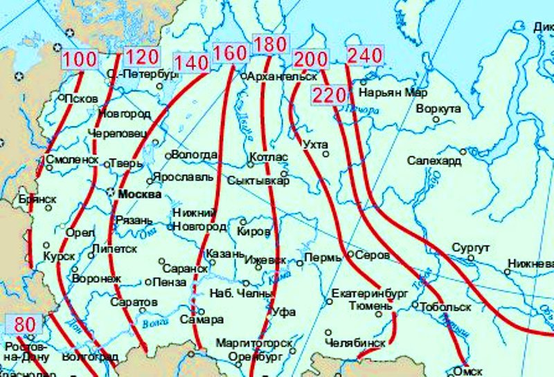 До речі, тут ще варто відзначити і таку річ: глибина промерзання грунтів — річ сезонна і безпосередньо залежить від типу клімату. Тут можна навести такі дані по глибині промерзання: